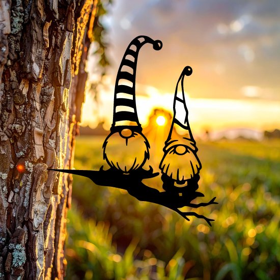 Breng een vrolijk en betoverend accent in je tuin met deze cortenstalen boomstaak, vormgegeven als twee charmante gnomes. Het speelse ontwerp vangt de magie en het mysterie van deze traditionele tuinkabouters, waardoor je buitenruimte een unieke en gezellige sfeer krijgt.