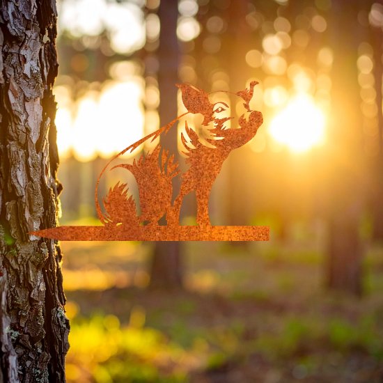 De natuurlijke roestlaag die zich na verloop van tijd vormt, geeft de boomstaak een karaktervolle uitstraling en beschermt het materiaal tegen weersinvloeden. Deze decoratieve boomstaak is perfect om tegen een boom te plaatsen of in een border te zetten, en is een leuke toevoeging voor liefhebbers van landelijke tuinen en dieren.