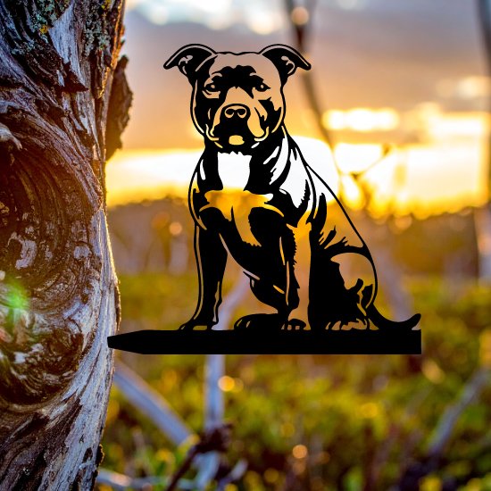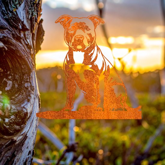 Breng kracht en karakter in je tuin met deze stoere cortenstalen boomstaak, vormgegeven als het silhouet van een pitbull. Het scherpe, herkenbare profiel van deze trouwe en sterke hond geeft jouw buitenruimte een krachtige en persoonlijke uitstraling.