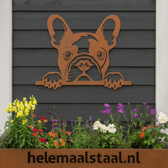 Cortenstaal ontwikkelt na verloop van tijd een unieke roestbruine patinalaag, waardoor elk stuk een warme en levendige uitstraling krijgt. Deze Franse Bulldog vormt een echte blikvanger in de tuin, op het terras of als wanddecoratie – een ode aan één van de meest geliefde gezelschapshonden.