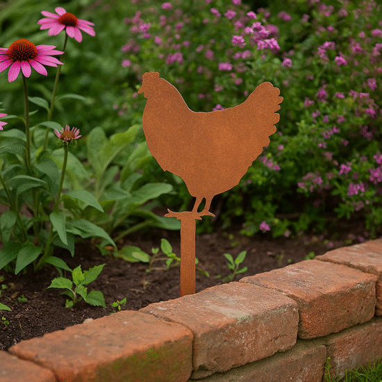 Breng karakter en functionaliteit in je tuin of kippenren met deze robuuste kippenstaak, gesneden uit duurzaam 2 mm dik Cortenstaal. Deze metalen decoratie is niet alleen een stijlvolle eyecatcher, maar ook een solide toevoeging die bestand is tegen weer en wind.