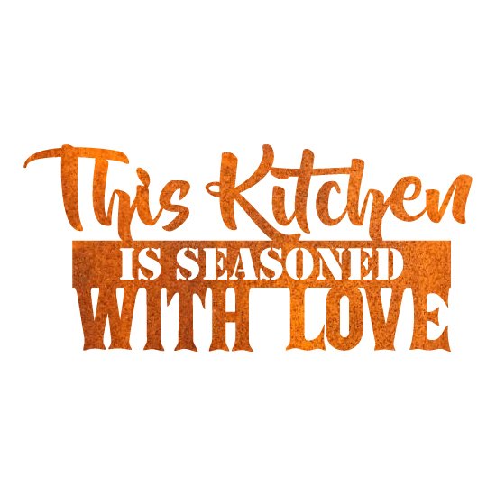 Voeg een warme en liefdevolle sfeer toe aan je keuken met dit prachtige bordje van cortenstaal, waarin de tekst “This Kitchen is Seasoned with Love” zorgvuldig is uitgesneden. Dit unieke decoratiestuk combineert een stijlvolle, rustieke uitstraling met een boodschap die de passie en het hart van elke thuiskok weerspiegelt.
